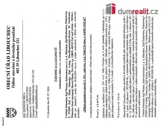 máme pro Vás jedinečnou nabídku - prodej tři pozemku k výstavbě 254/2, 254/3 a 255/4 každý o výměře 700 m² v moc hezkém prostředí obce Velkého Chvojna. Stavební povolení pro rozdělení pozem...ků na čtyři parcely mame schválené jak stavebním úřadem tak i krajským rozvojovým úřadem tudíž nebrání nic k výstavbě rodinných domu a je již zapsáno v katastru nemovitostí. Ty to pozemky jsou ideální pro výstavbu rodinných domů, který můžou mít dvě nadzemní podlaží a podkroví.