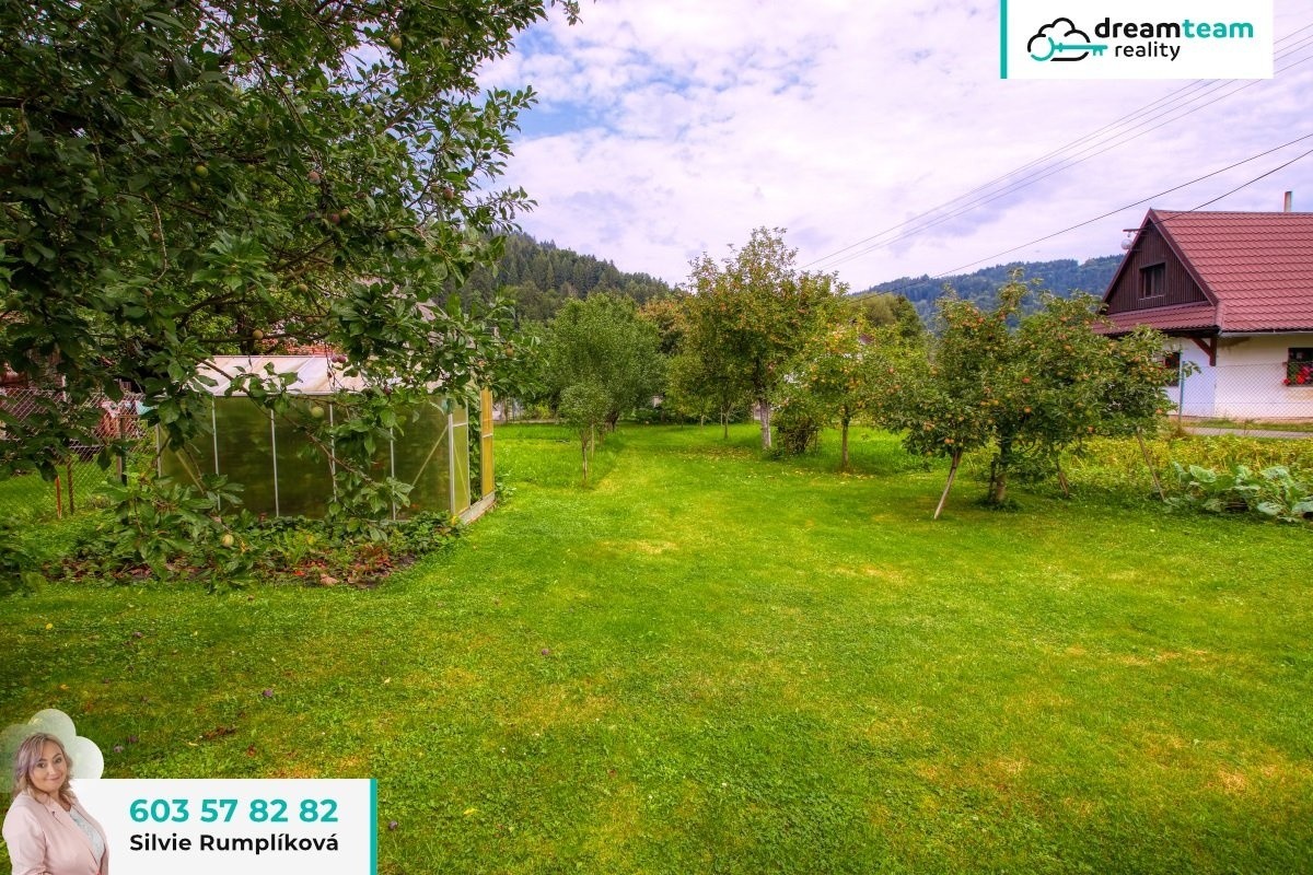Stavební pozemek má rozlohu zhruba 750 m2. Proč zhruba? Protože ještě není v katastru oddělen, takže se můžete s majitelem domluvit, kde přesně byste si představovali mít hranici. Jak vidíte na fotkách, pozemek je krásně rovinatý, jen lehoulilince se svažuje směrem k Vsetínské Bečvě, která je asi 250 m daleko. A můžete být v klidu, ani v roce 1997, ani jindy, nepřišla povodeň na návštěvu.