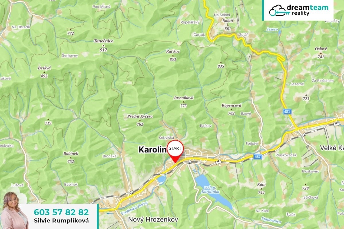 Karolinka je taková nenápadná menší sestra vyhlášených Velkých Karlovic. Stejné údolí, stejná krása valašské přírody, stejně pohostinní súsedi keří mluvijá jak Jarmila Šuláková. Jen ceny nemovitostí jsou tu o poznání rozumnější. A navíc to máte o krůček blíž na Vsetín. Než řeknete H - H - H - H - Ú, jste tam. Cože?? No přece Hrozenkov - > Halenkov > Huslenky > Hovězí > Ústí a jste v okresním městě.