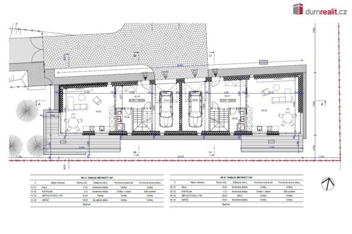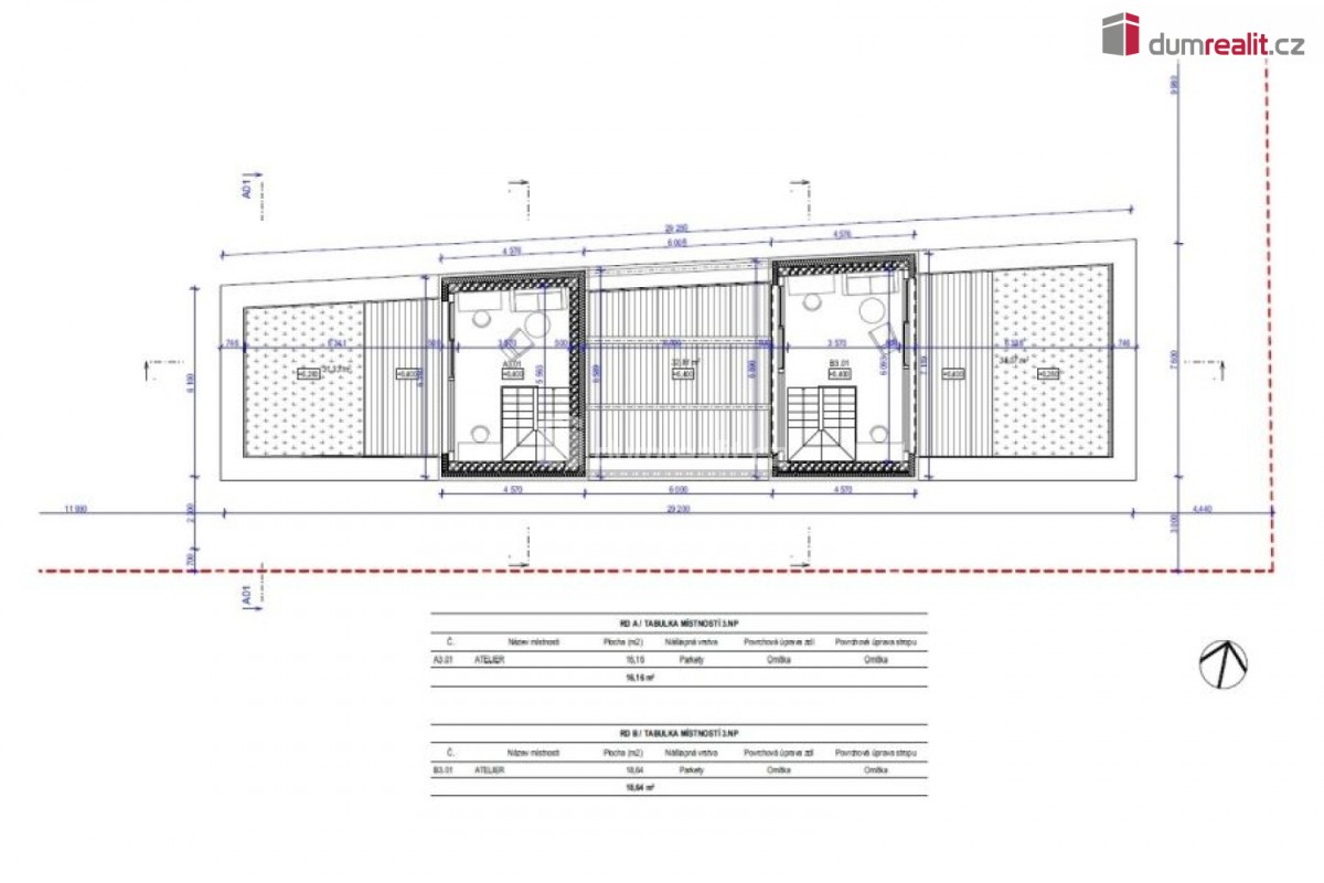 Cena uvedena včetně provize a právních služeb. . Dumrealit. cz Vám nabízí koupi rovinatého stavebního pozemku plochy 909m² určeného pro výstavbu dvojdomu o užitné ploše 333, 5m², se sklepními prostory 166, 1m² a střešními t...erasami plochy 102, 2m². Pozemek je obdélníkového tvaru s plánovaným vjezdem z ulice Davídkova, Praha 8. Nachází se na kopci v místě, kde svah pozvolna přechází do roviny. Na výstavbu dvojdomu již bylo v roce 2025 vydáno územní rozhodnutí. Směrově je situován zejména na jih a sever. Dům "A" má užitnou plochu 159, 0m², plus sklepní prostory 78, 8m² a střešní terasy 47, 7m². Dům "B" má užitnou plochu 174, 5m², plus sklepní prostory 87, 3m² a střešní terasy 54, 5m². Jedná se vždy o dvě obytná nadzemní podlaží a střešní ateliér se dvěma terasami pro každý dům. V 1. NP (první nadzemní patro) se nachází hala, koupelna a obývací pokoj s kuchyňským koutem, dále garáž. Ve 2. NP (druhé nadzemní patro) se nachází tři ložnice a prostornější koupelna. Ve 3. NP (třetí nadzemní patro) se nachází střešní ateliér se vstupy na dvě terasy, z nichž bude moc hezký výhled na Prahu. V celé ploše půdorysu domu je podzemní podlaží s výškou stropu 2, 55m se širokým potenciálem využití na kanceláře, skladové prostory, tělocvičnu, posilovnu, herny apod. .