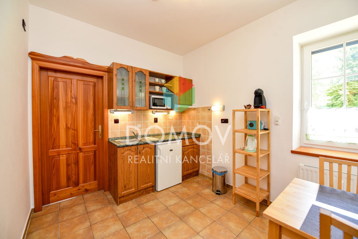 Z kuchyně i ložnice je moc... hezký výhled do zahrady, což zajišťuje naprostý klid. Apartmán se skládá z plně vybavené kuchyně, útulné ložnice s bukovou postelí a prostorné koupelny se sanitárním vybavením na vysoké úrovni (Geberit, Grohe). Okna jsou plastová, vybavená elektricky stahovatelnými předokenními roletami na dálkové ovládání. Je zde vlastní podružný vodoměr a elektroměr, na topení měřáky, regulace teploty termostatem. Vytápění budovy je zajištěno plynovým kondenzačním kotlem. K dispozici je vysokorychlostní internetové připojení. Apartmán se nabízí včetně vybavení.