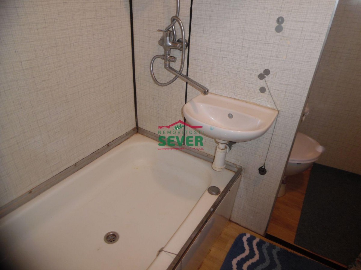 Nemovitosti SEVER vám zprostředkují prodej bytu 1+1 v osobním vlastnictví, Louny, ul. Slovenského národního povstání. Byt. jednotka v původním zachovalé stavu, o výměře 33 m2<.../sup>, se nachází ve třetím nadzemním podlaží panelového domu s euro výtahem a jeho součástí je lodžie a sklepní kóje. V bytě jsou plastová okna se žaluziemi, na zemi krytina PVC, v pokoji s kobercem. Koupelna s sociální zařízení WC jsou společné v původním umakartovém jádru. V kuchyni je linka, kombinovaný sporák, prostor na pračku, jídelní kout. Cena bytu je včetně veškerého nábytku. Dům po kompletní revitalizaci bez problémových nájemníků se nachází nedaleko centra města. V případě zájmu zajistíme optimální financování našimi poradci.