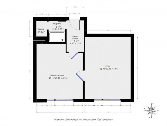 Prodej bytu 1+1, 34 m2 - Maková 2804, Severní Terasa, Ústí nad Labem, okr. Ústí nad Labem (již není v nabídce)