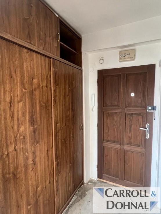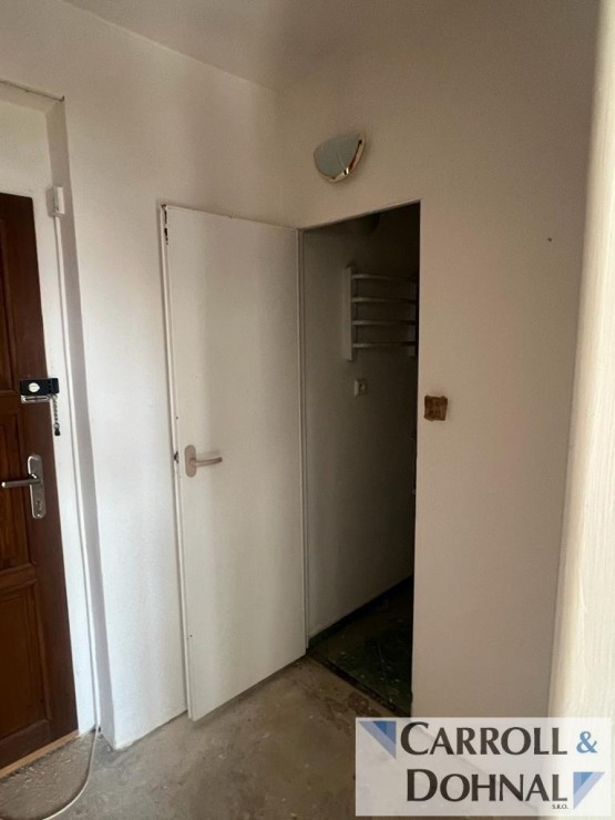 Byt je slunný a má výborné dispoziční řešení. Z předsíně s vestavěnou skříní je vstup do koupelny se záchodem a do velkého obývacího pokoje. Z obývacího pokoje se jde do kuchyně s malou kuchyňskou linkou a malou spižní skříní.