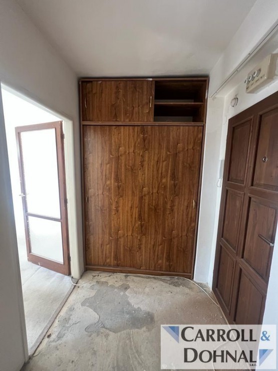 Byt je slunný a má výborné dispoziční řešení. Z předsíně s vestavěnou skříní je vstup do koupelny se záchodem a do velkého obývacího pokoje. Z obývacího pokoje se jde do kuchyně s malou kuchyňskou linkou, dostatečným prostorem pro jídelní stůl a malou spižní skříní.