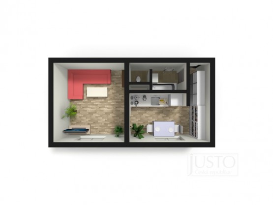 1+1, 36 m2, panelová, OV, 1. podlaží