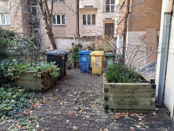 Hlavní obytný prostor s přímým vstupem na zahradu ve vnitrobloku, kuchyňka s kuchyňskou linkou, předsíň, komora, koupelna se sprchovým koutem a s sociální zařízení WC.