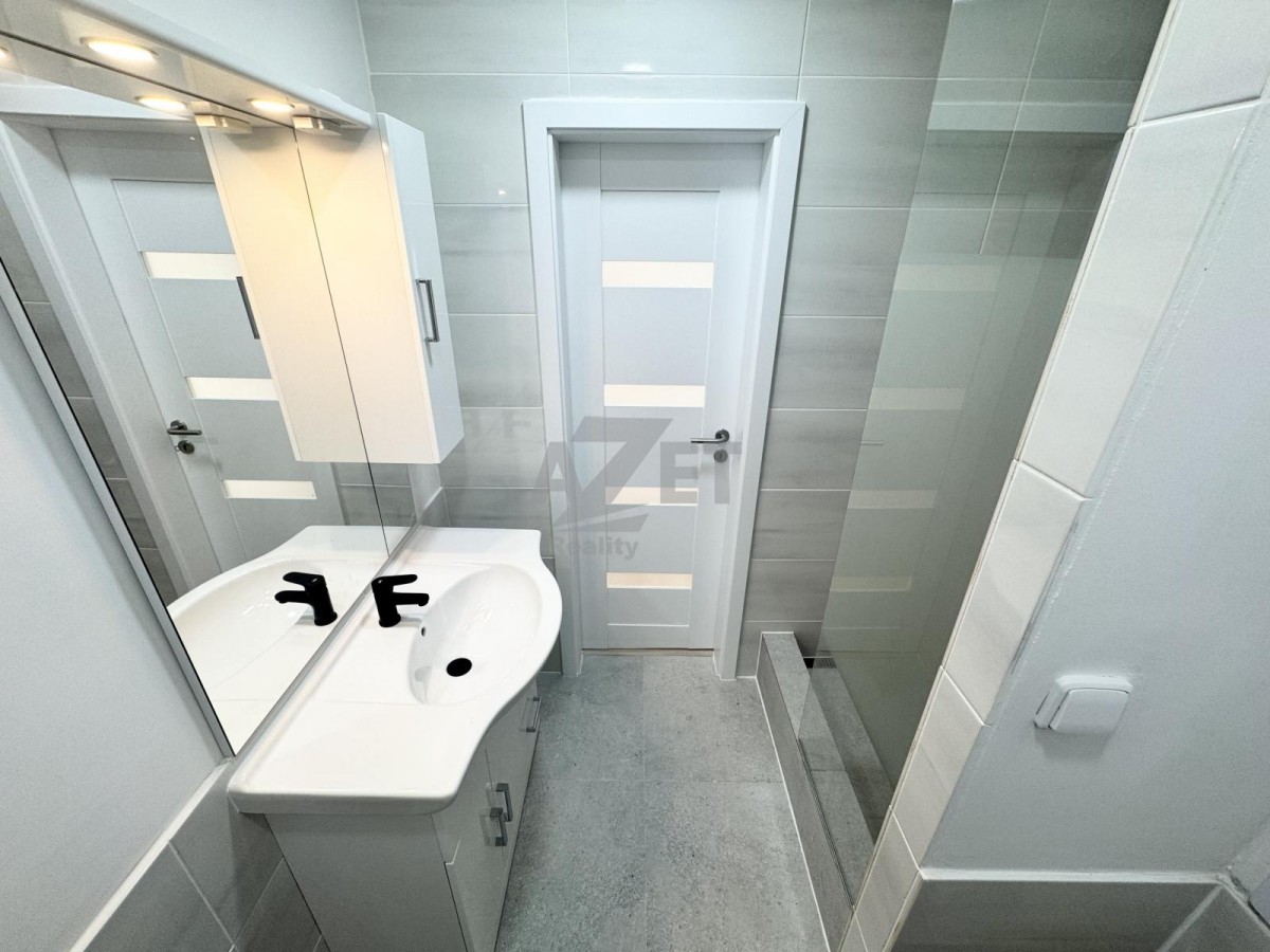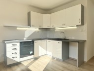 Sádrokartonové jádro, el. rozvody v mědi, nové jističe, omítky, malba, nová kuchyňská linka se spotřebiči (el. varná deska, el. trouba), keramicky obložená sanita + snížené podhledy s LED osvětlením, plovoucí podlahy, protipožární vstupní a interiérové dveře.