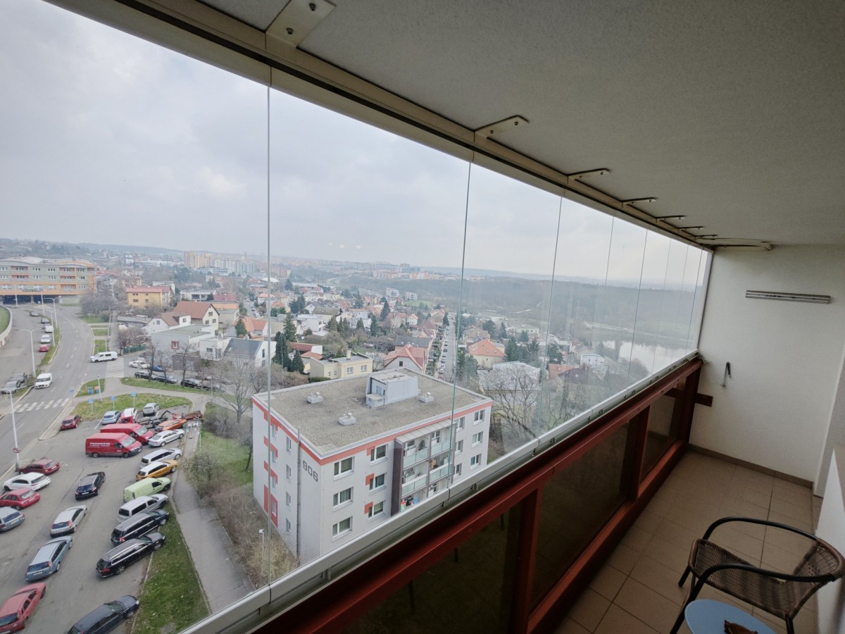 Nabízíme k prodeji světlý byt 1+1 o výměře 40m2+ Lodžie 6m2(zasklená) v 9. NP (deváté nadzemní patro) nově rekonstruovaného domu s novými výtahy a zděným sklepem 2..., 5m2. Dům je po kompletní rekonstrukci obvodového pláště(zateplení), oken, výtahů, střechy, sklepů a společných prostor, v celém domě včetně výtahů je kamerový systém, vchodové dveře na čip. Byt je po rekonstrukci se zděným bytovým jádrem, menší kuchyňskou linkou, na radiátorech jsou měřiče, nové rozvody, nová elektřina, plastová okna, podlahové krytiny, nová lodžie s dlažbou a zasklením. Byt má moc hezký výhled do kraje a je orientován na severovýchod. U tohoto bytu je jednoduchou přestavbou možná změna dispozice na 2+kk. Měsíční náklady jsou velice nízké 2700, - Kč + elektřina. Nedaleko domu je škola, školka, hřiště, metro(Rajská zahrada) je v docházkové vzdálenosti, autobusová zastávka u domu, v blízkosti les, Kyjský rybník.