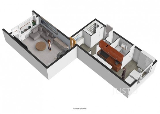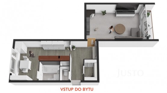 Byt působí prostorně a prakticky. Je skvělé, že se jedná o zachovalý byt s umakartovým, zachovalým jádrem. Rozdělení bytové jednotky je velice funkční – prostorný obývací pokoj se vstupem do lodžie, funkční kuchyňský kout, oddělená koupelna a toaleta, vstupní předsíň a šatna přidávají na praktičnosti a pohodlí.
