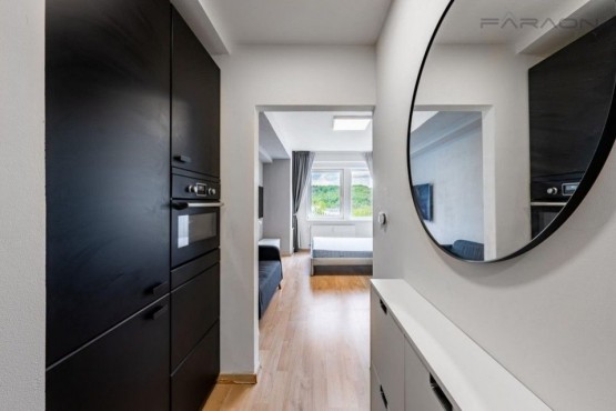 Velmi tichá jednotka v osobním vlastnictví je situována v zadní části komplexu, její okna směřují na západ, na přírodní památku "Vidouli". Dispozici tvoří předsíň, koupelna a obývací místnost s kuchyňským koutem. K jednotce přísluší sklepní kóje v suterénu domu.