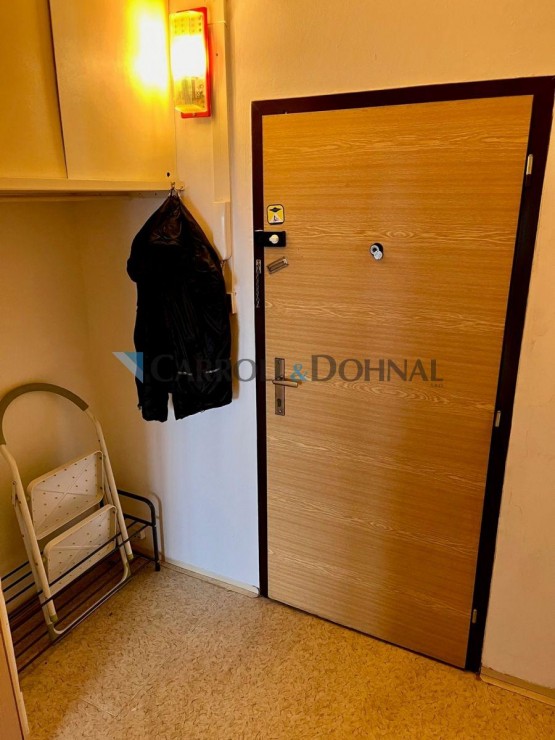 V částečně zařízeném bytě je prostorný pokoj s hezkým kuchyňským koutem a policový systém s úložnými prostory. Praktické úložné prostory jsou také v předsíni, odkud je samostatný vstup do zděné koupelny a na samostatné sociální zařízení WC.