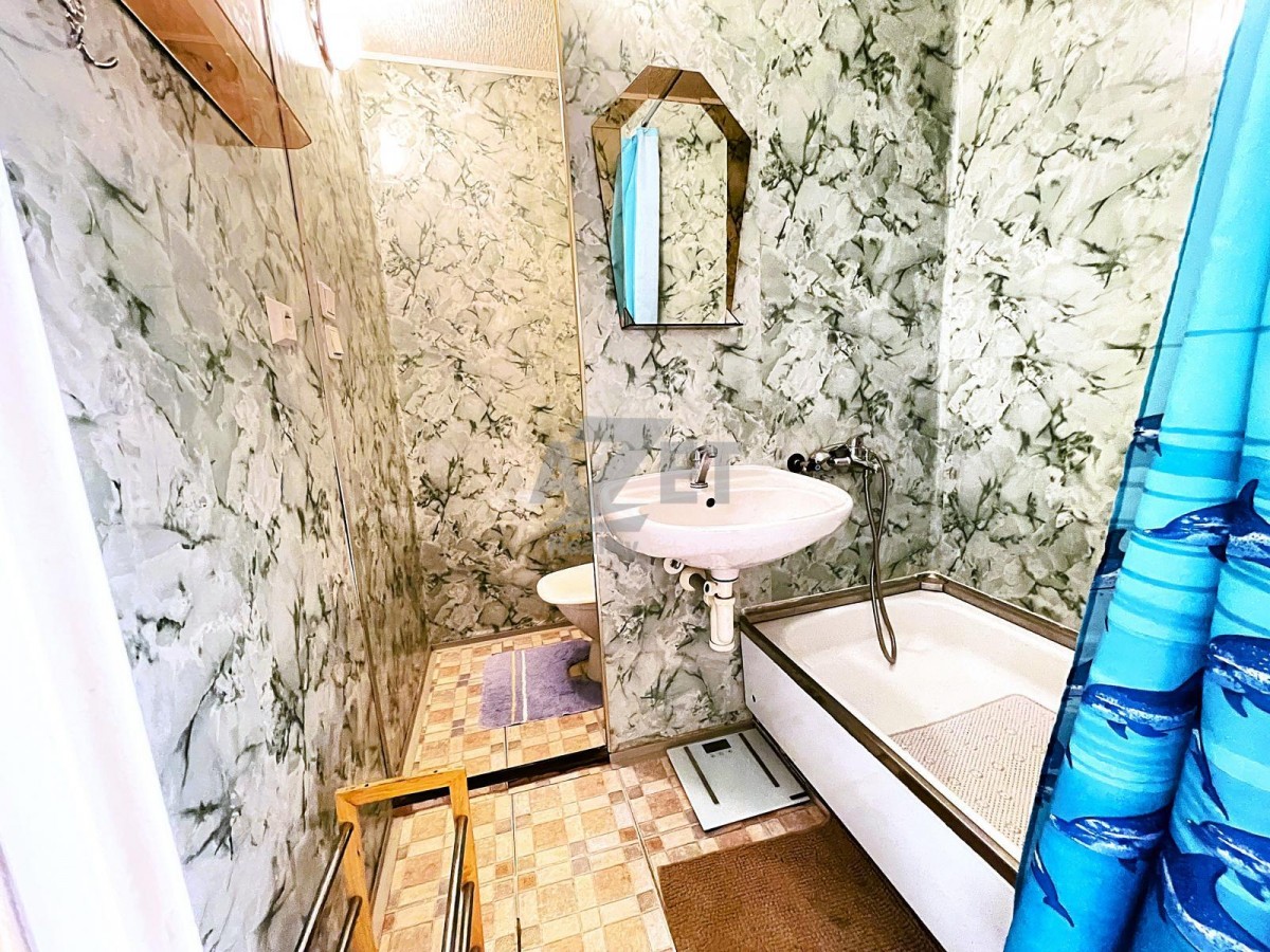Podlahy v pokoji tvoří PVC kryté kobercem, v předsíni a v sanitě PVC. V koupelně a na sociální zařízení WC jsou stěny opatřeny omyvatelnou tapetou, ke koupání či sprchování slouží plytká zapuštěná vana se zástěnou, dále je koupelna opatřena umývadlem se zrcadlem. V kuchyni starší plechová kuch. linka v bílém provedení, el. sporákem s el. troubou. Nedílnou součástí prodeje je sklepní kóje (cca 2 m2) společně s možností využití společných prostor. Orientace oken je na jihovýchod.