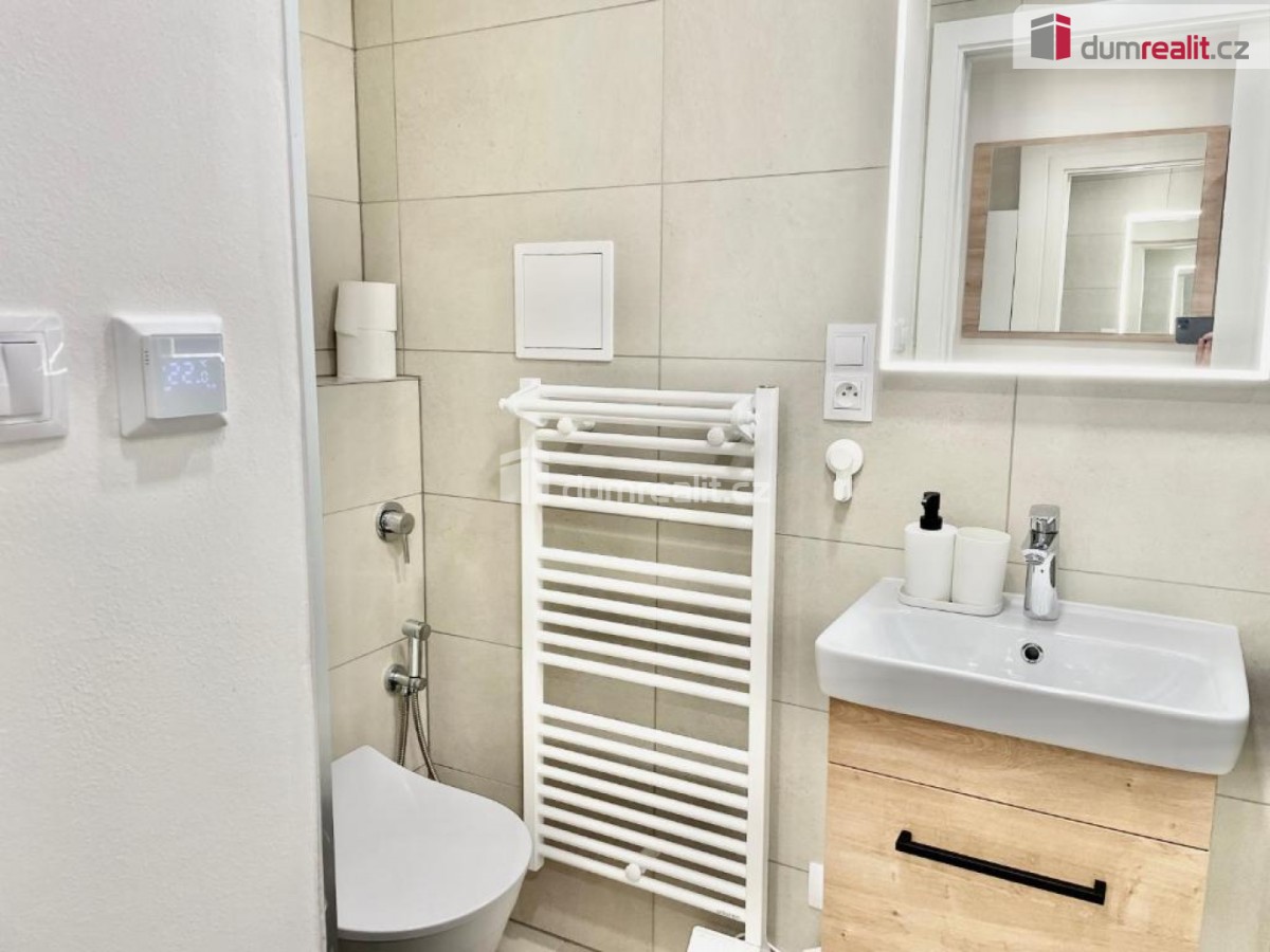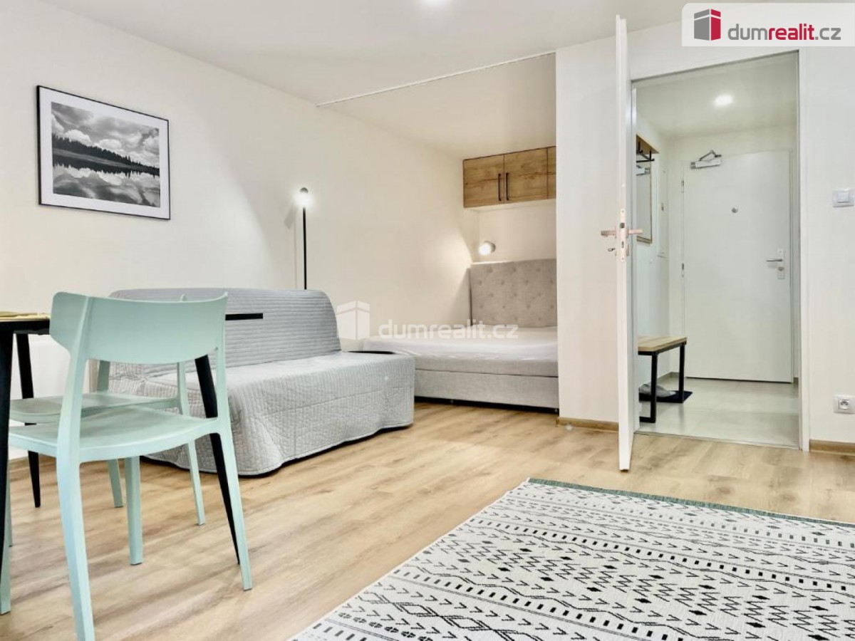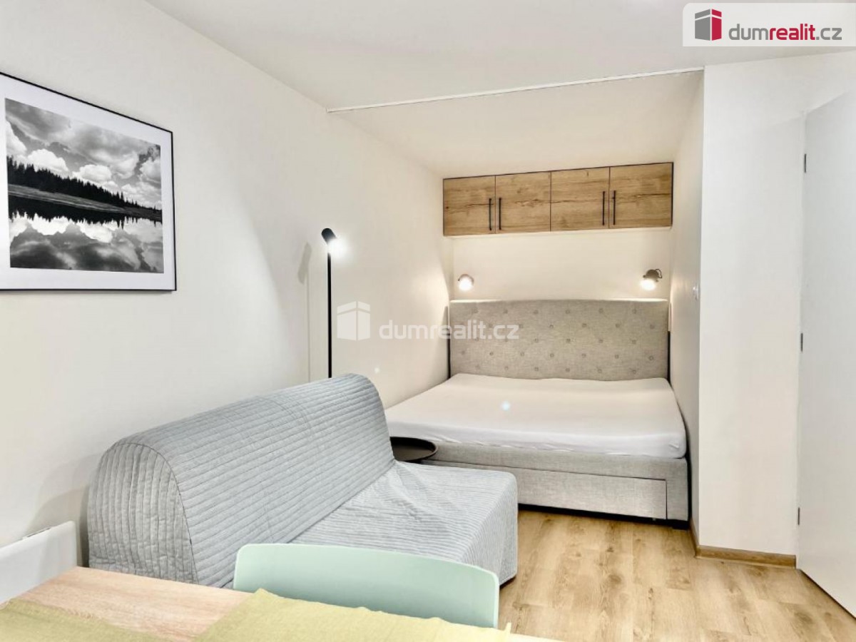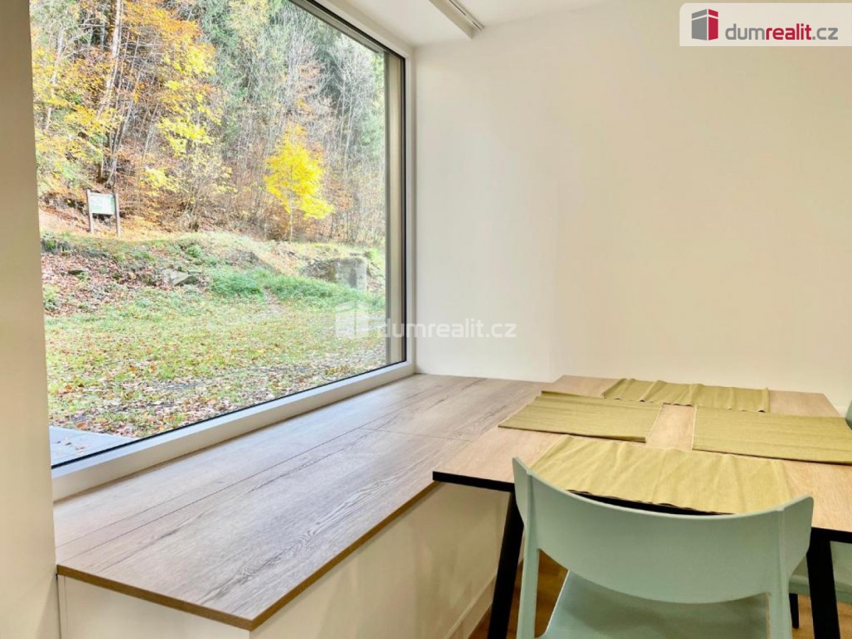 CENA je včetně provize a právního servisu. . Dumrealit. cz Vám nabízí prodej ateliéru (jednotky) 1+kk o velikosti 32, 19 m² v Jáchymově okr. Karlovy Vary, ulice K Lanovce. Neb...ytový prostor byl v roce 2023 rekonstruován a zkolaudován na „Ateliér“, který je v osobním vlastnictví a nachází se v 1. nadzemním podlaží (celkem 5 NP) zatepleného cihlového domu včetně výtahu, jižní východ /tzv. francouzské okno/ je do dvora za domem, dveře a okna jsou plastová. Podlahová krytina v chodbě a v koupelně je z dlažby, ostatní podlaha je laminátová. Koupelnu s sociální zařízení WC, umyvadlem se skříňkou včetně sanity, sprchovým koutem a otopným žebříkem; kuchyňská linka s varnou deskou a digestoří, dřezem a vestavěnou mikrovlnnou troubou. Byt je dispozičně upraven tak, že máte oddělenou spací část a obývací pokoj. Vytápění bytu je ústřední topení zajištěno centrální plynovou kotelnou pro bytový dům; teplá voda ohřev el. bojler; studená voda je dodávána z veřejného vodovodního řadu, stejně tak kanalizace je napojena na veřejný řad. Byt se nabízí k prodeji s vybavením.