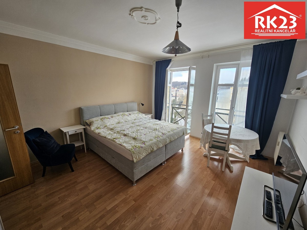 Prodej bytu 1+kk s moc hezkým výhledem do okolí v Mariánských Lázních na ul. Masarykova, který se nachází ve 4. patře bytového domu včetně výtahu. Byt působí světlým dojmem, ...v pokoji je umístěn kuchyňský kout. Vstupní chodba bytu je prostorná a nachází se zde velká vestavěná skříň. V koupelně je umístěna vana, umyvadlo a pračka. Toaleta je oddělena. Dům je v dobře udržovaném a čistém stavu. V okolí se nachází lázeňská kolonáda, prameny, kavárny, parky a jiné. Pro více informací kontaktujte makléře. S financováním poradíme