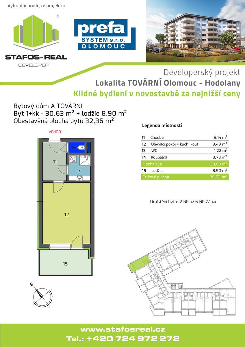 Nabízíme Vám koupi slunného bytu 1+kk v partnerském projektu výstavby bytového domu A, na ulici Tovární, Olomouc.