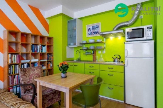 Útulný, do detailu zařízený byt, v novém cihlovém domě, s výborným dopravním spojením. Velký, tichý a světlý pokoj s okny do dvora, jižním směrem; prostorná koupelna s vanou; předsíň. Prodávám včetně veškerého vybavení.... Čtvrť Palmovka právě prochází gentrifikací, kterou již zažil Karlín. Novostavby bytů a moderní kanceláře se mísí s původním duchem čtvrti a vytvářejí podhoubí pro vznik nových příjemných podniků a služeb. V poslední době tak otevřeli např. nové kavárny, pekárny, občerstvení, restaurace, neapolská pizza, květinářství a venkovní bar. Centrum města stihnete za 10 minut autem i MHD; ale skvěle se dostanete i kamkoliv po Praze; byt je u stanice metra a 9 linek tramvají, poblíž vnitřního okruhu. Snadno zaparkujete na ulici v modré rezidenční zóně; návštěvy najdou i místo zdarma. V bytě majitel spokojeně bydlel více než 15 let. Výhodou je tichost a nízké poplatky za byt: včetně vody, teplé vody a tepla činí 1788 Kč.