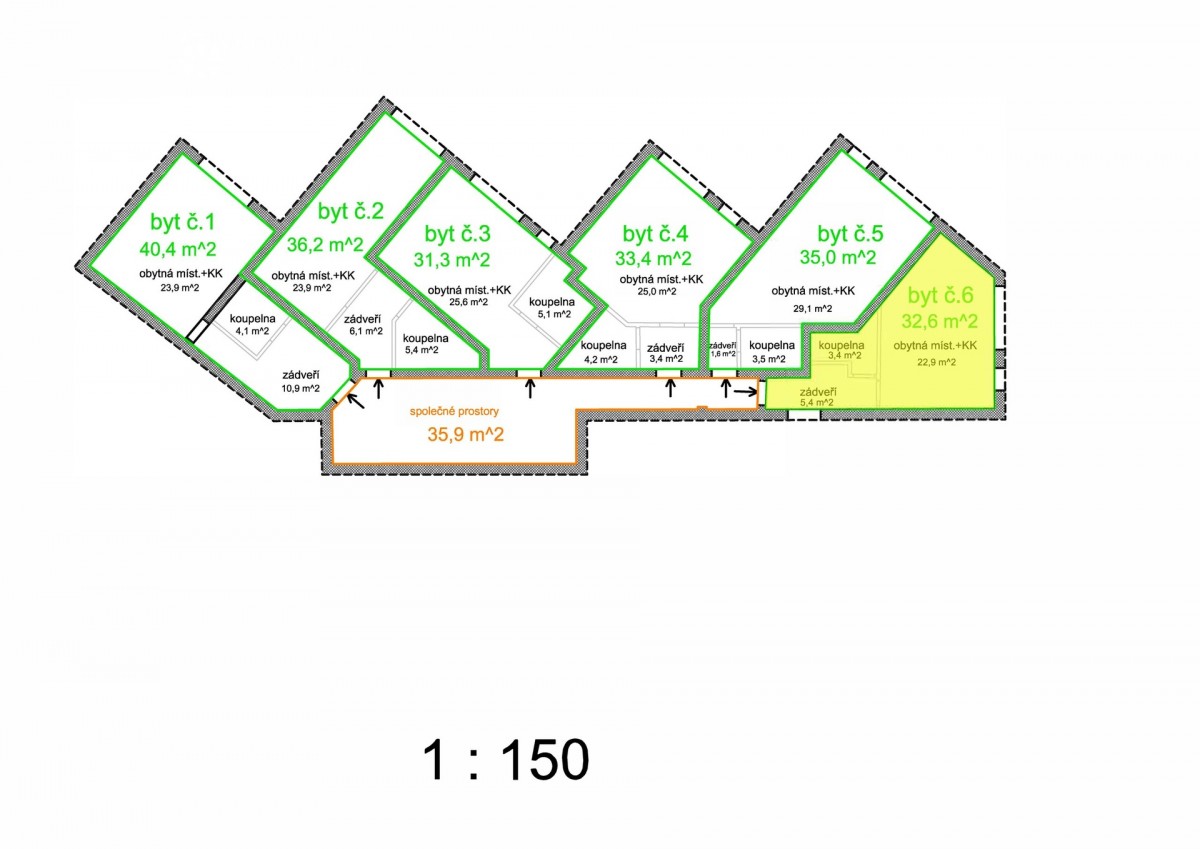 *Byt je těsně před dokončením – aktuálně čekáme na dodání vstupních dveří. Fotografie jsou z obdobných bytů v projektu. Doporučujeme osobní prohlídku. Brzy spustíme nabídku šesti bytů 1+kk v cenové hladině do cca 5, 5 mil. Kč.