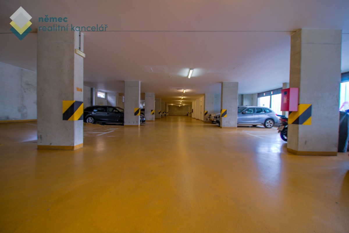 Možnost pronájmu krytého garážového stání v přízemí objektu.