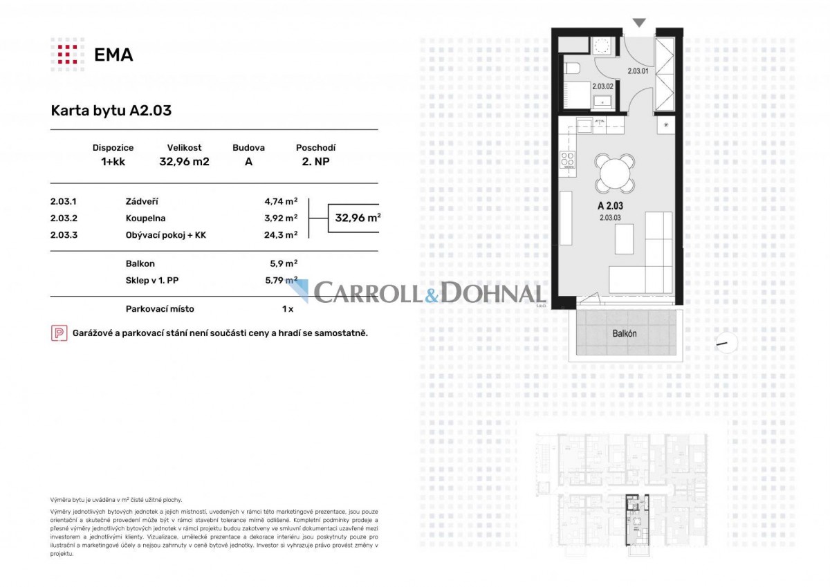 Byt. jednotka 1+kk má výměru 32, 63m2 a je situovaná ve druhém nadzemním podlaží. Standardní vybavení bytu splňuje podmínky moderního bydlení (podlahové vytápění - kombinace plynového kotle a FVE panelů na střeše budovy, francouzská okna, příprava na elektricky ovládané žaluzie, příprava pro nabíječky pro elektromobily atd. ). Design bytu si můžete upravit dle vlastních požadavků.