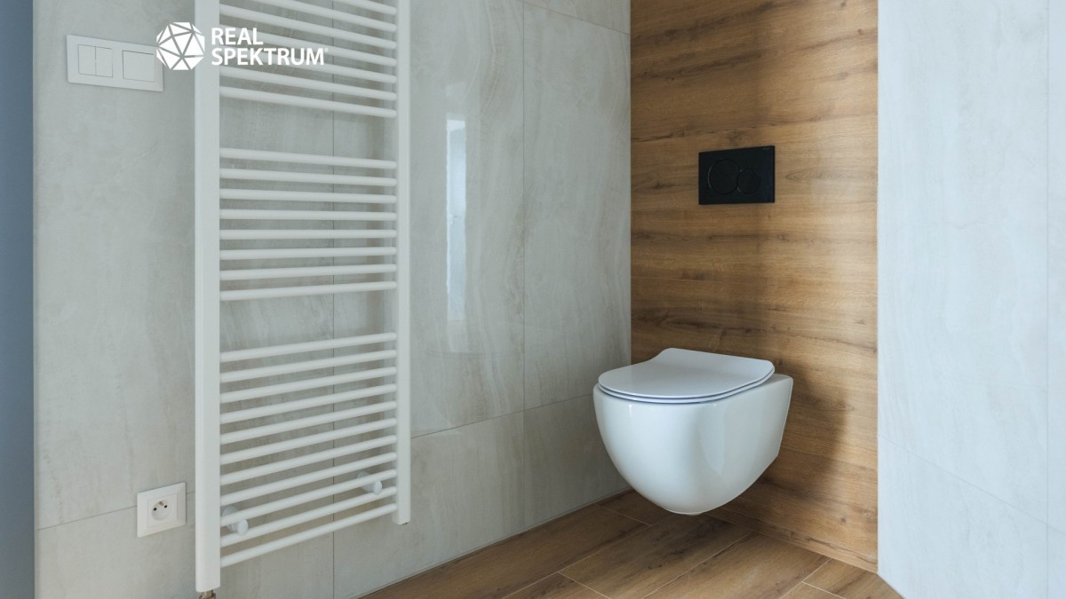 Obklady a dlažba: Luxusní velkoformátové dlaždice imitace mramoru a dřeva pro elegantní vzhled.