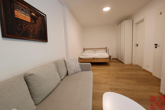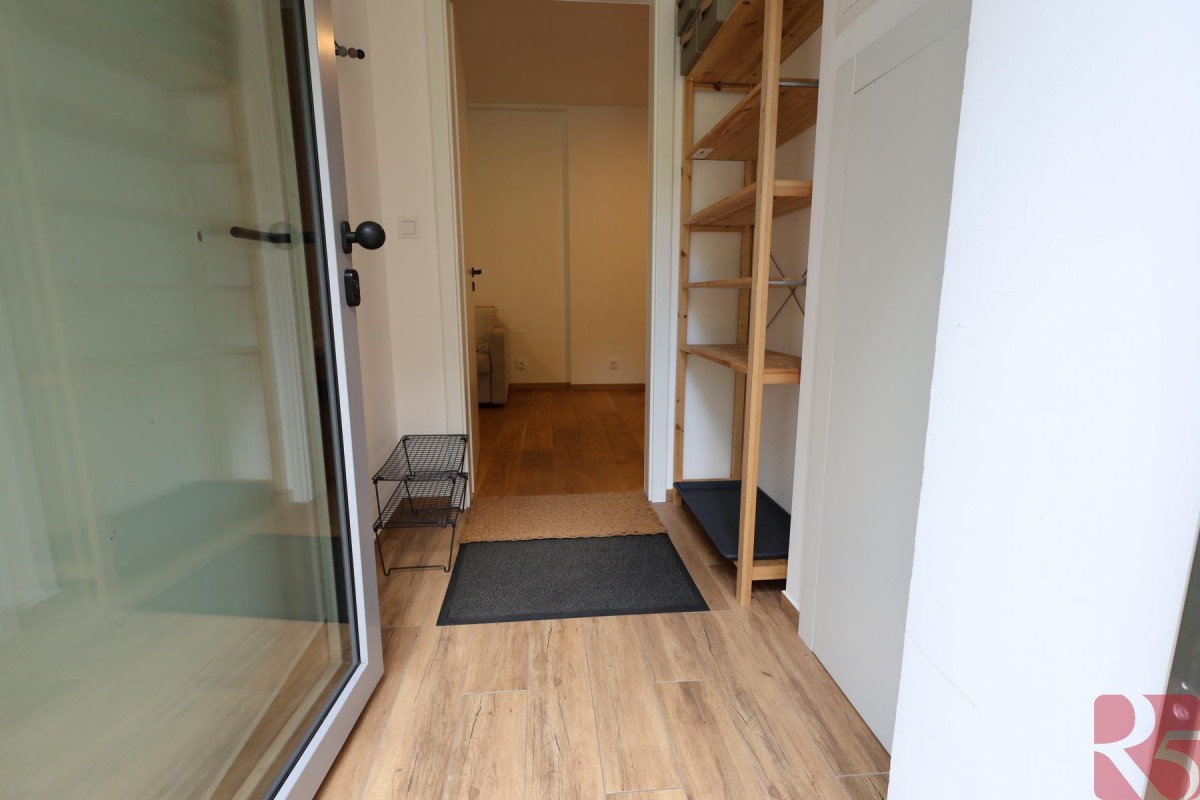 K vybavení bytu patří moderní kuchyňská linka včetně vestavěných spotřebičů, což usnadňuje každodenní vaření. Interiér je zařízen moderním nábytkem, včetně pohodlné rozkládací sedačky, jídelního stolu, židlí a dvoulůžka. Ve spací zóně se nachází šatní skříň, která poskytuje dostatek úložného prostoru pro osobní věci.