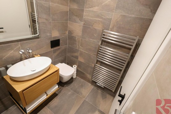 Koupelna je vybavena sprchovým koutem a toaletou.