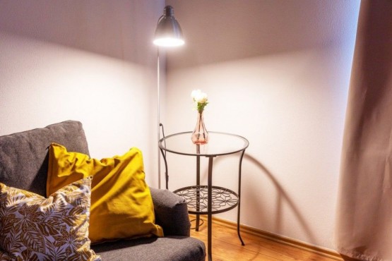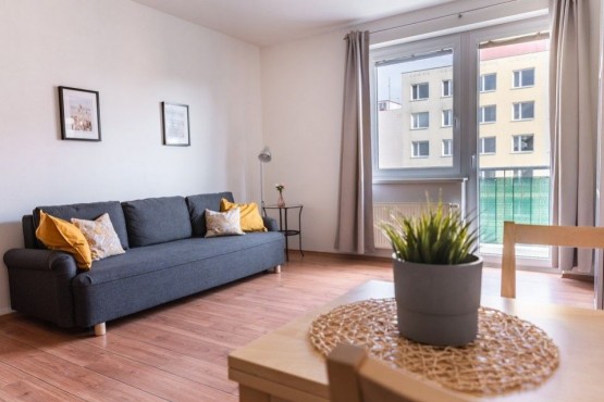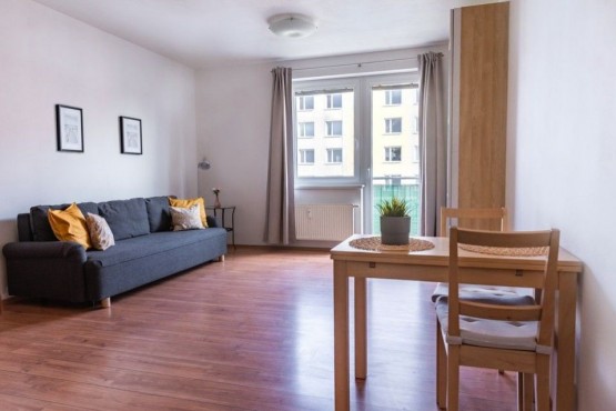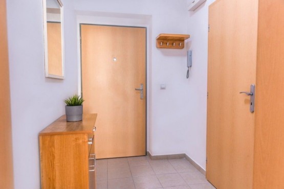 Vybavení zahrnuje vybavenou kuchyňskou linku, plovoucí podlahy v dekoru dřeva, rozkládací spací pohovka, vestavěná šatní skříň. V domě k dispozici místnost pro umístění kol. Výborné parkovací stání před domem.