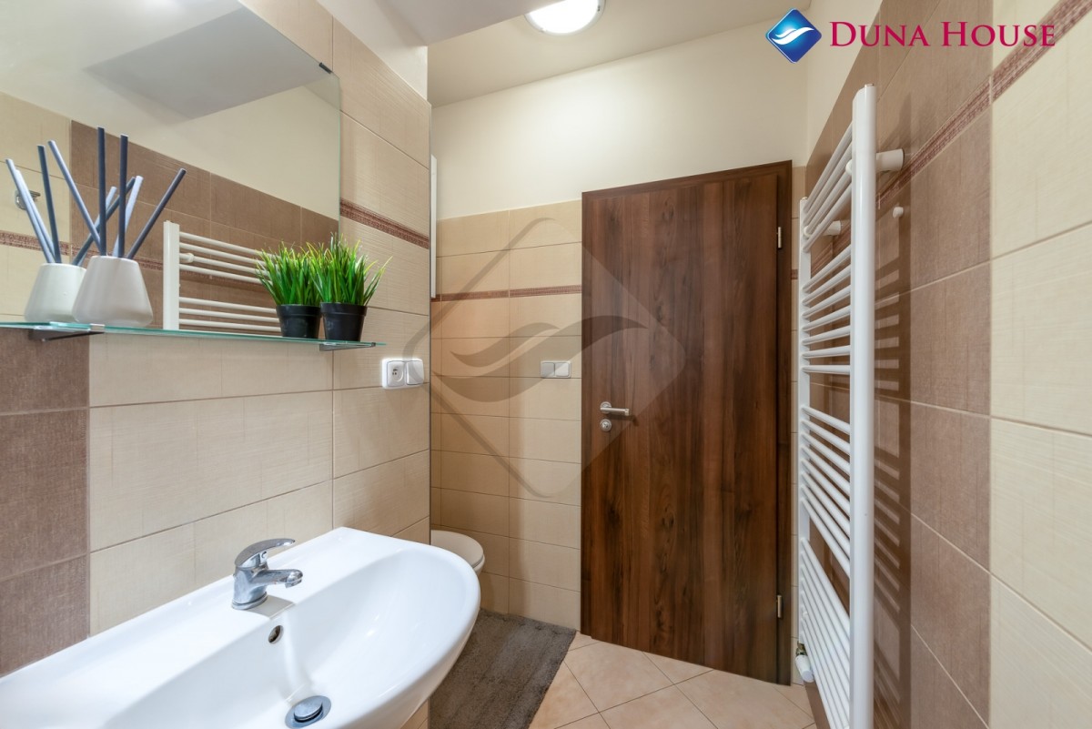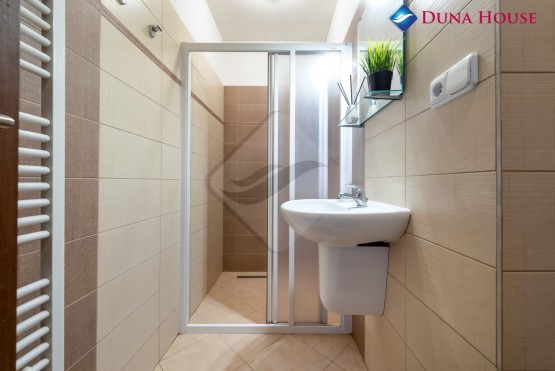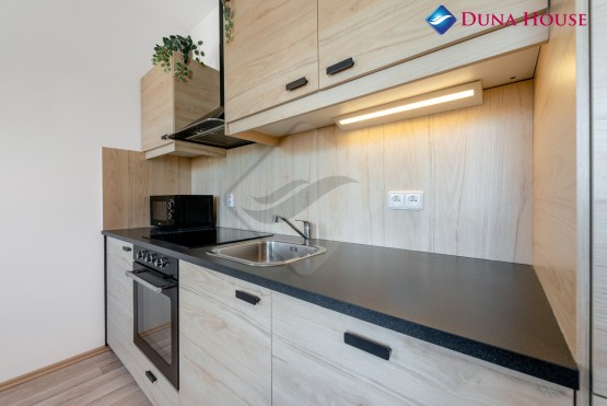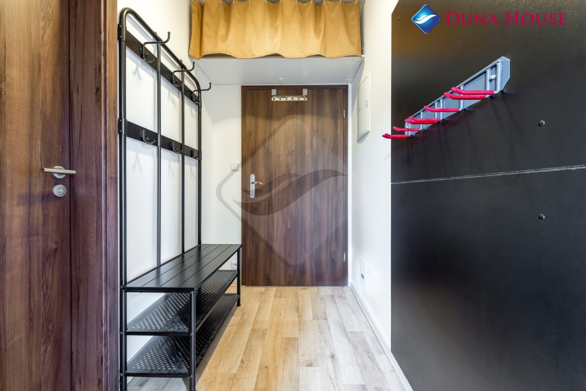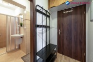 Ze vstupní chodby lze vejít do koupelny se sprchou a sociální zařízení WC a dále do obytné místnosti, kde se nachází plně vybavená kuchyň s vestavěnými spotřebiči (horkovzdušná trouba, sklokeramická deska, mikrovlnná trouba, lednice a pračka).