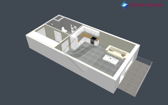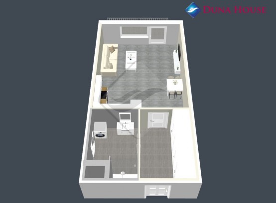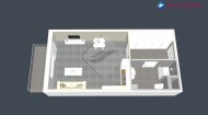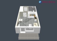 Byt bude sestávat z prostorné vstupní předsíně s místem pro úložné prostory, z koupelny se sprchovým koutem a toaletou, a prostorného obývacího pokoje s kuchyňským koutem a vstupem na již zmiňovanou lodžii o velikosti 4, 4 m2 orientovanou na Z.