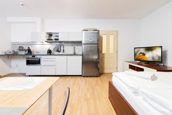 Moderní byt tvoří otevřený prostor obývacího pokoje s novou trendy kuchyní se všemi spotřebiči, jídelním koutem a pohovkou, dále ložnicová část, prostorná koupelna s kvalitním koupelnovým nábytkem, vana, toaleta s bidetovou sprškou, prostorná šatna s dostatkem úložných prostor. Vstupní chodba.