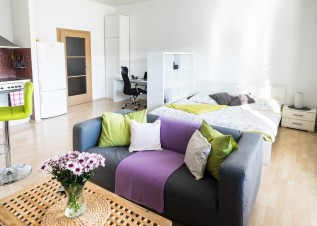 Světlý byt 1+kk o ploše 42, 88 m orientovaný na jihozápad v atraktivní lokalitě Prahy 9 Libeň, Českomoravská 1181/23.
