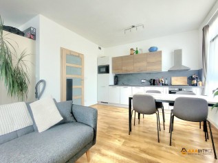 Interiér bytu tvoří předsíň, koupelna se sprchovým koutem a toaletou a hlavní obytná místnost s kuchyňským koutem. Díky třem oknům orientovaným na jih a východ je byt krásně prosvětlený po celý den. V bytě zůstává kvalitní vybavení kuchyňská linka s lednicí, mikrovlnnou troubou, myčkou, elektrickou troubou a varnou deskou. Dále zde zůstává televizní stěna, skříň, dvojlůžko, okenní závěsy a vestavěná skříň v předsíni. Pořizovací cena vybavení včetně kuchyně dosahovala v roce 2020 částky 400 000 Kč.