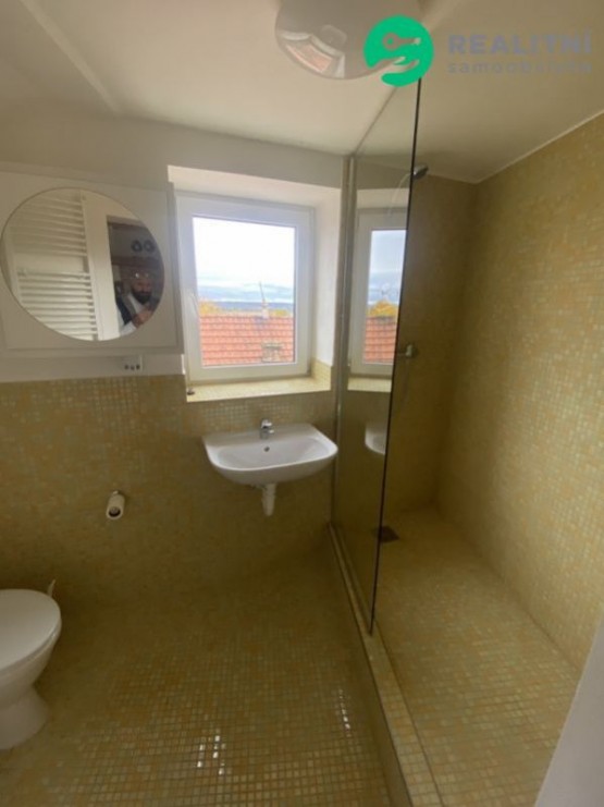 Ve třetím patře domu s výhledem na Lovoš a Milešovku. Plocha 5...2m2 v budově zrekonstruovaného statku
