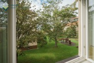 Nabízený byt je je orientován na dvě světové strany. Po vstupu do předsíně (4 m²) budete mít po pravé ruce nejprve samostatnou toaletu (0, 8 m²), potom koupelnu (1, 8 m²). Z chodby zařízené skříní na míru vstoupíte do centrálního obývacího pokoje (15, 70 m²), který má, stejně jako kuchyně (6 m²), okna na západ do zeleně. Kuchyň má navíc spíž. Přes obývací pokoj je přístupná i ložnice (13 m²) s orientací na jih také do stromů.