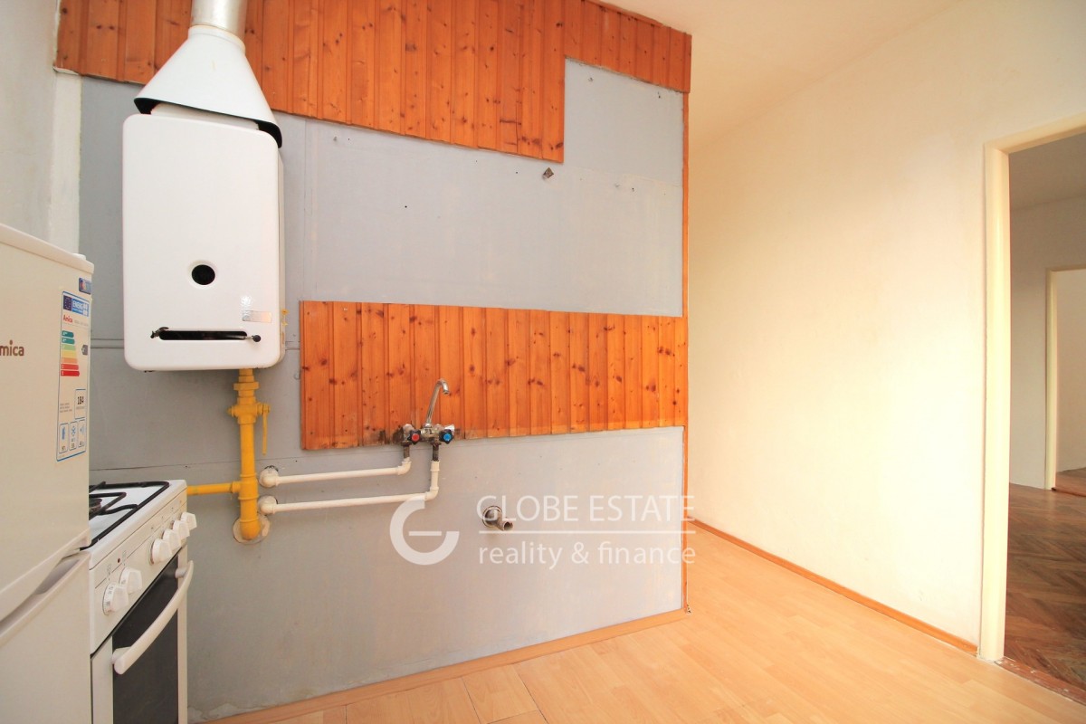 V bytě s jižní orientací je ústřední vytápění a ohřev TUV zajišťovala plynová karma (nově ideálně el. bojler).