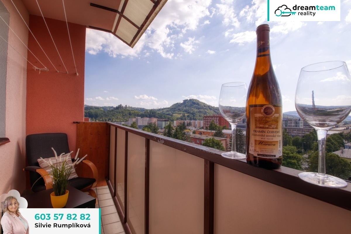 Je to paráda, když máte dostatečně velký balkón. Křesílko, knížka, kafíčko, kytičky. . . No a když zvednete oči od knížky, ve dne i v noci vás čeká výhled jako z časopisu. Přes den jsou to siluety místních kopců a různé domy rozeseté po okolí. V noci zas zajímavě osvětlené stavby v bývalé Tesle a hvězdná obloha. Z osmého patra vidíte svět prostě s nadhledem.