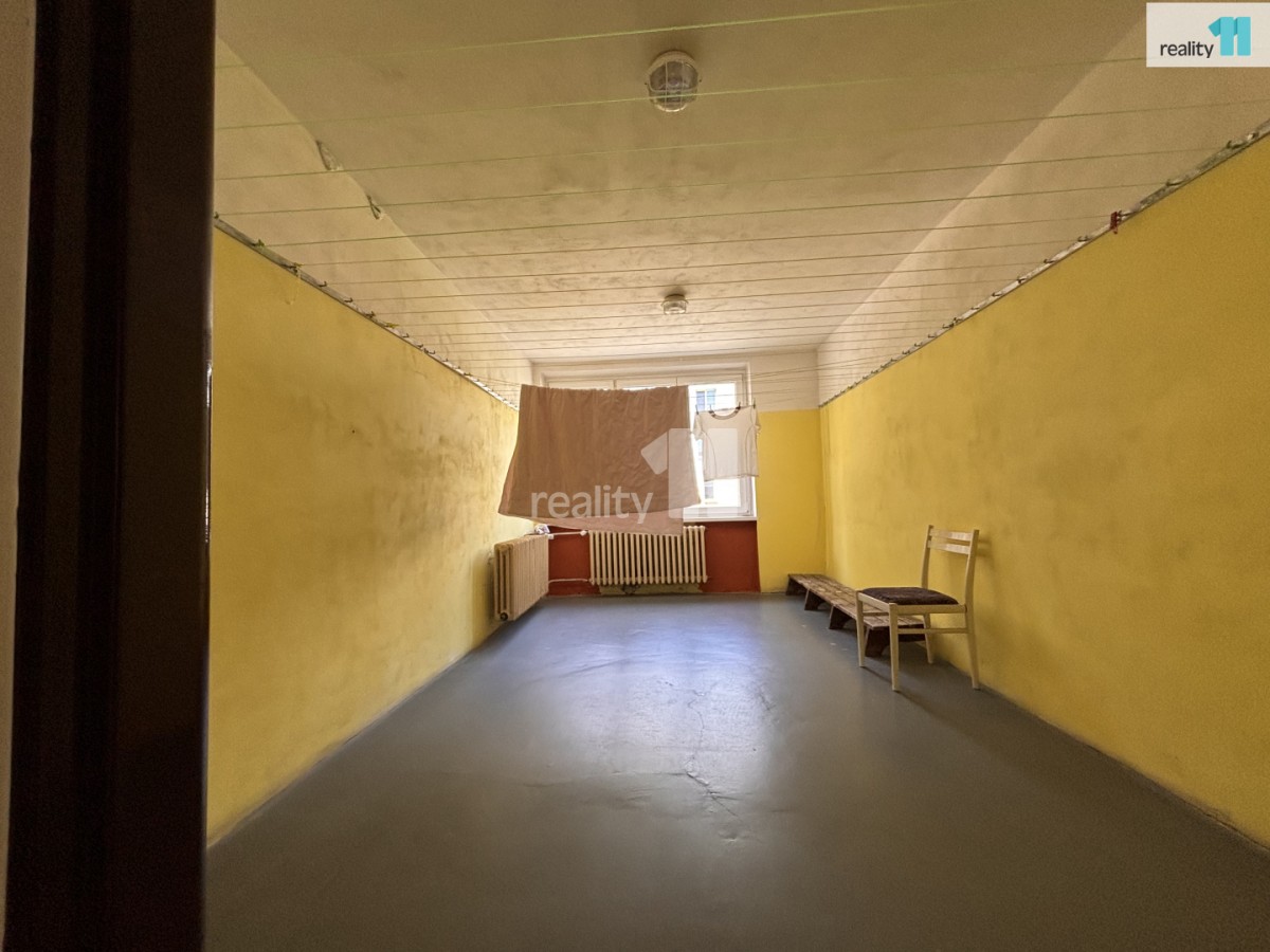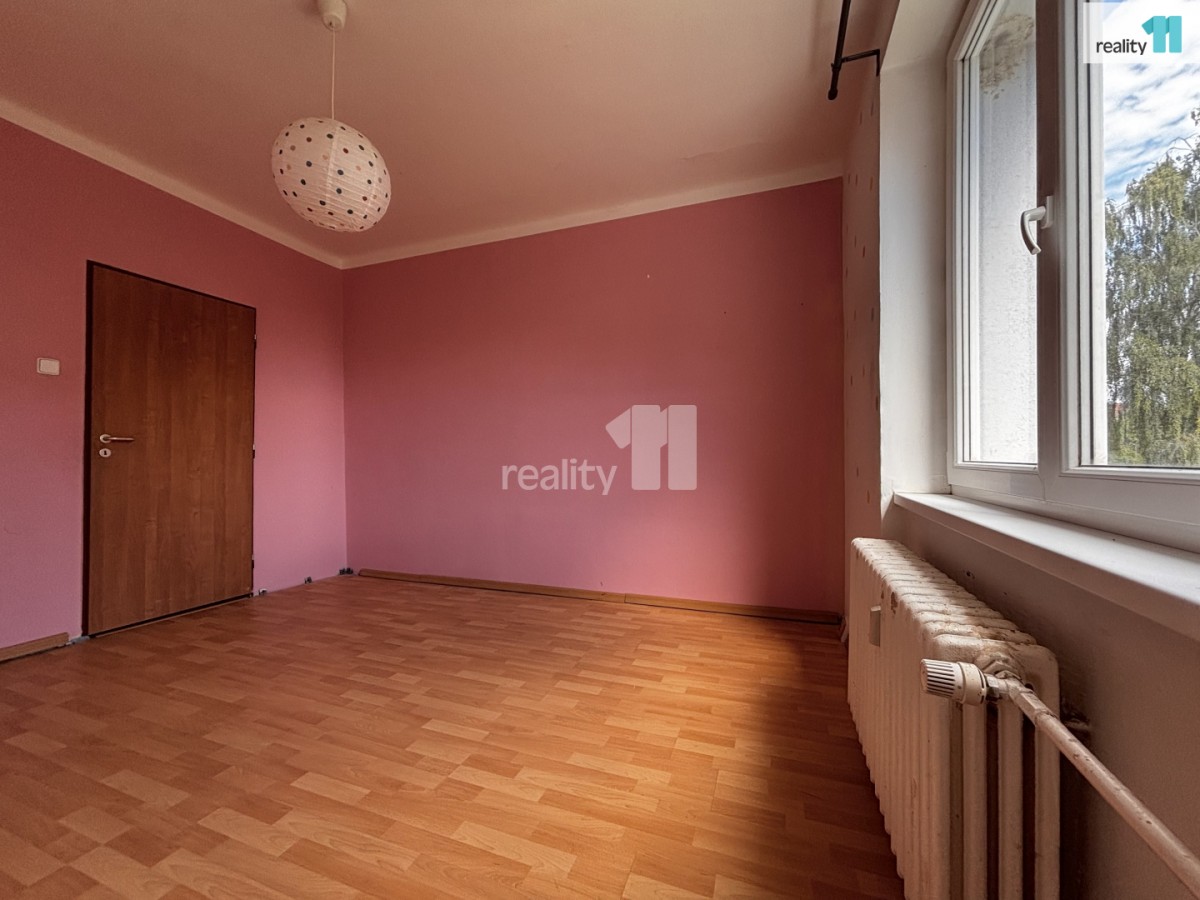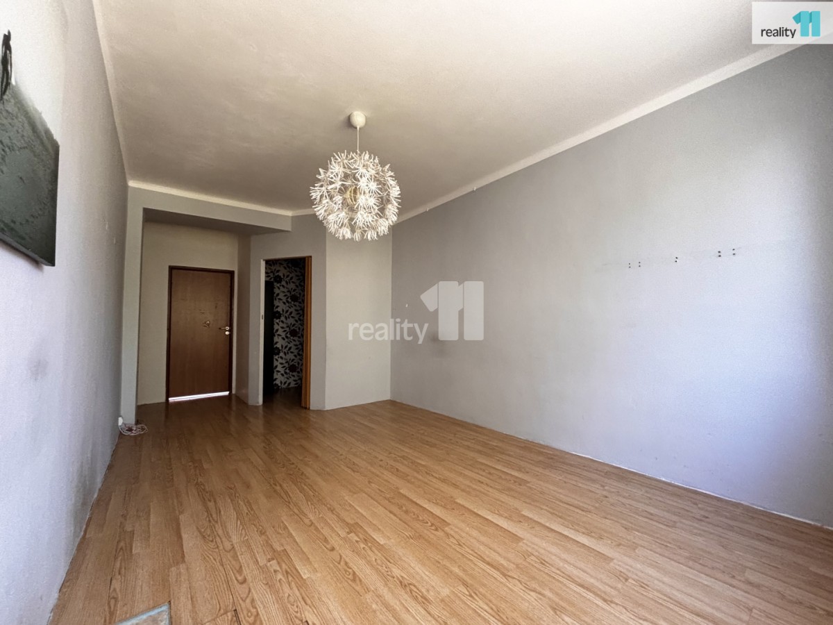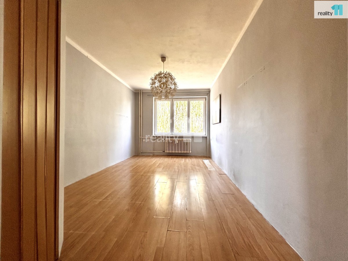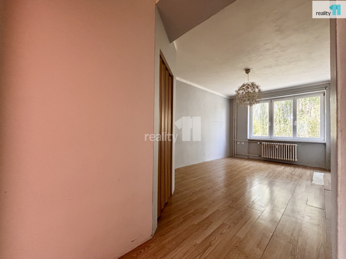 Dispozice: obývací pokoj s oddělenou šatnou, kuchyň (bez linky), ložnice/dětský pokoj, koupelna se sprchovým koutem a toaletou, prostorná předsíň.
