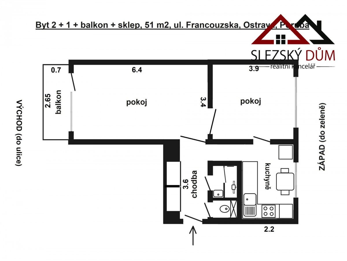 Prodej bytu 2+1, 51 m2 - Francouzská 904, Ostrava, okr. Ostrava-město (již není v nabídce)