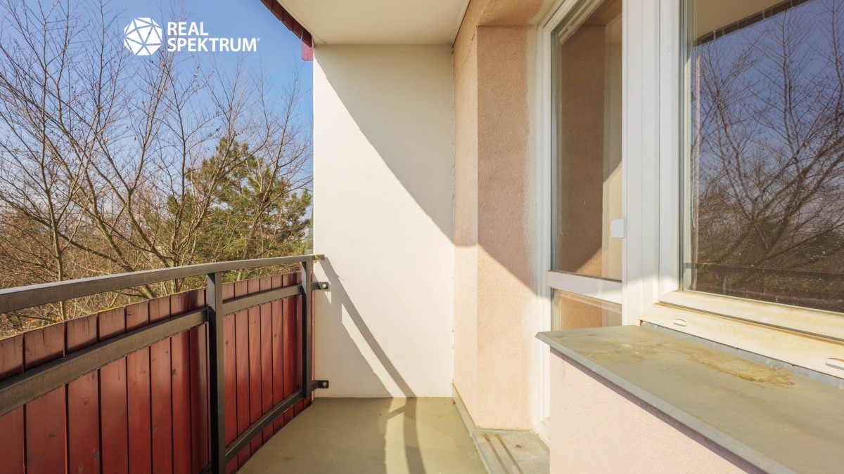 Dispozice bytu je prakticky řešená – tvoří ji vstupní chodba, samostatná kuchyně, prostorný obývací pokoj, ložnice, praktická komora, koupelna, samostatné sociální zařízení WC a balkon orientovaný na jih, který zajišťuje dostatek denního světla po celý den.