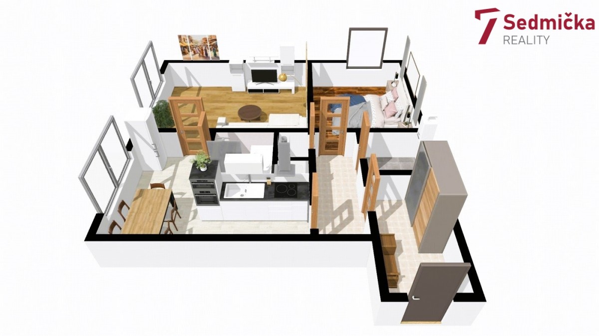 2+1, 56 m2, panelová, OV, 1. podlaží