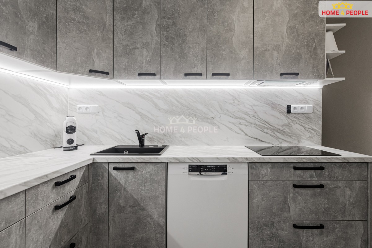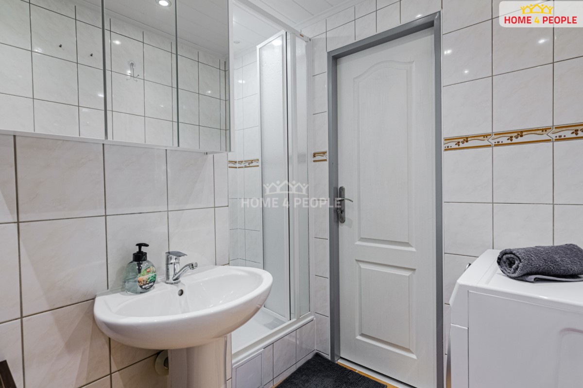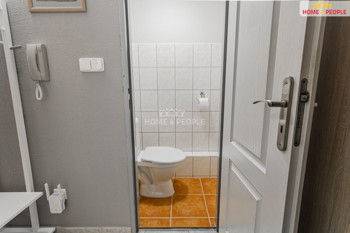 Při vstupu do bytu vejdete do prostorné předsí...ň (8 m²), která spojuje jednotlivé místnosti. Obývací pokoj (20, 5 m²) nabízí dostatek místa i pro jídelní stůl. Kuchyně (12 m²) je vybavená moderní kuchyňskou linkou s vestavěnými spotřebiči. Ložnice (16 m²) je orientovaná do klidné části domu. Koupelna se zděným jádrem má jak vanu, tak sprchový kout, toaleta je samostatně.