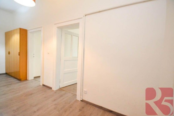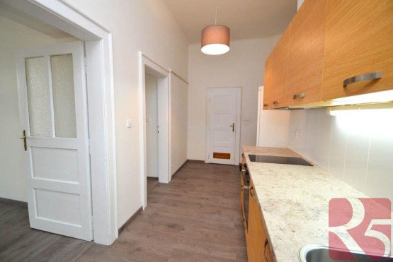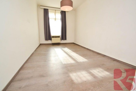 Díky přesunutí kuchyně jsou k dispozici dva velké samostatné pokoje. Pokoje orientovány do ulice Korunní,