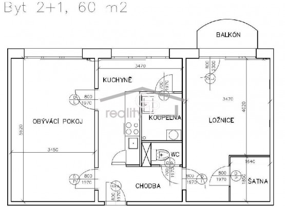 2+1, 60 m2, panelová, družstevní, 3. podlaží