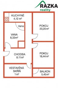 2+1, 62 m2, panelová, OV, 3. podlaží