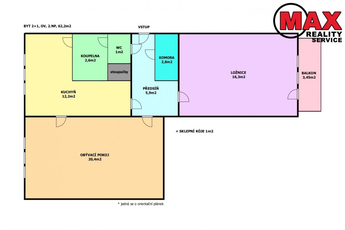 *Nejedná se o návrh na uzavření smlouvy (nabídku) ve smyslu § 1731 a § 1732 zákona č. 89/2012 Sb. , Občanského zákoníku. Společnost MAX Reality Service s. r. o. , si vyhrazuje právo uzavření všech smluvních vztahů v písemné formě, a to na jedné listině obsahující podpisy všech účastníků smlouvy. Uvedené informace mají pouze informativní charakter a mohou se v průběhu inzerce změnit.