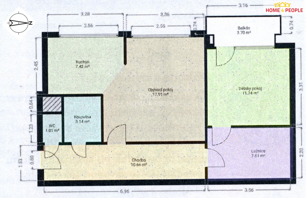 2+1, 63 m2, panelová, OV, 11. podlaží