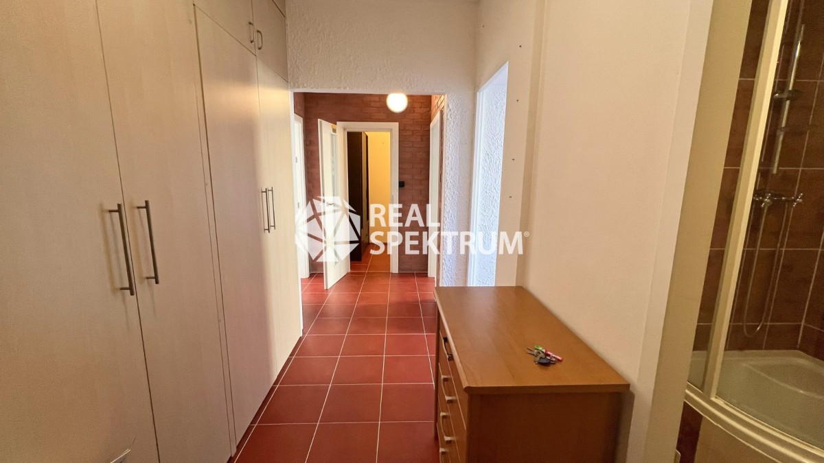 Vybavení: vybavení koupelny a sociální zařízení WC, kuchyňská linka + stůl a 4 židle, (bez mikrovlnné trouby), postel, šatníková skříň v ložnici a na chodbě, úložný prostor v šatně;