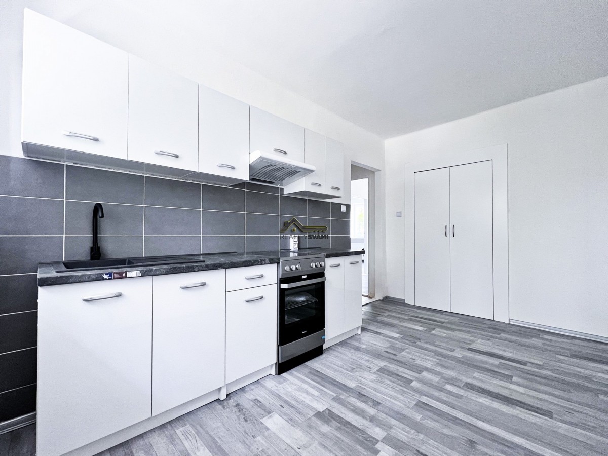 Nabízíme Vám ke koupi hezký, světlý, kompletně rekonstruovaný byt 2+1, s podlahovou plochou 64 m2 v podílovém spoluvlastnictví. To znamená, že byt je vhodný pro zájemce... s hotovostí, například k následnému pronájmu, nebo bydlení. Časem v domě proběhne vymezení bytových jednotek. Byt byl při rekonstrukci kompletně předělán, vyměnily se rozvody elektřiny, vybudovaly se nové omítky, byl vyměněn kotel na plyn, který zajišťuje ohřev vody a vytápění, dále položeny plovoucí podlahy, upravena koupelna s sociální zařízení WC, instalována nová kuchyňská linka. Byt je v horkých letních měsících příjemně chladný a v zimě dostatečně izolovaný a teplý. Svou polohou zajišťuje i dobrou dostupnost centra obce s občanskou vybaveností a dopravním spojením okolních měst. Financování lze pomocí hotovosti, nebo hypotékou s ručením jiné nemovitosti. Pro bližší informace mne neváhejte kontaktovat.