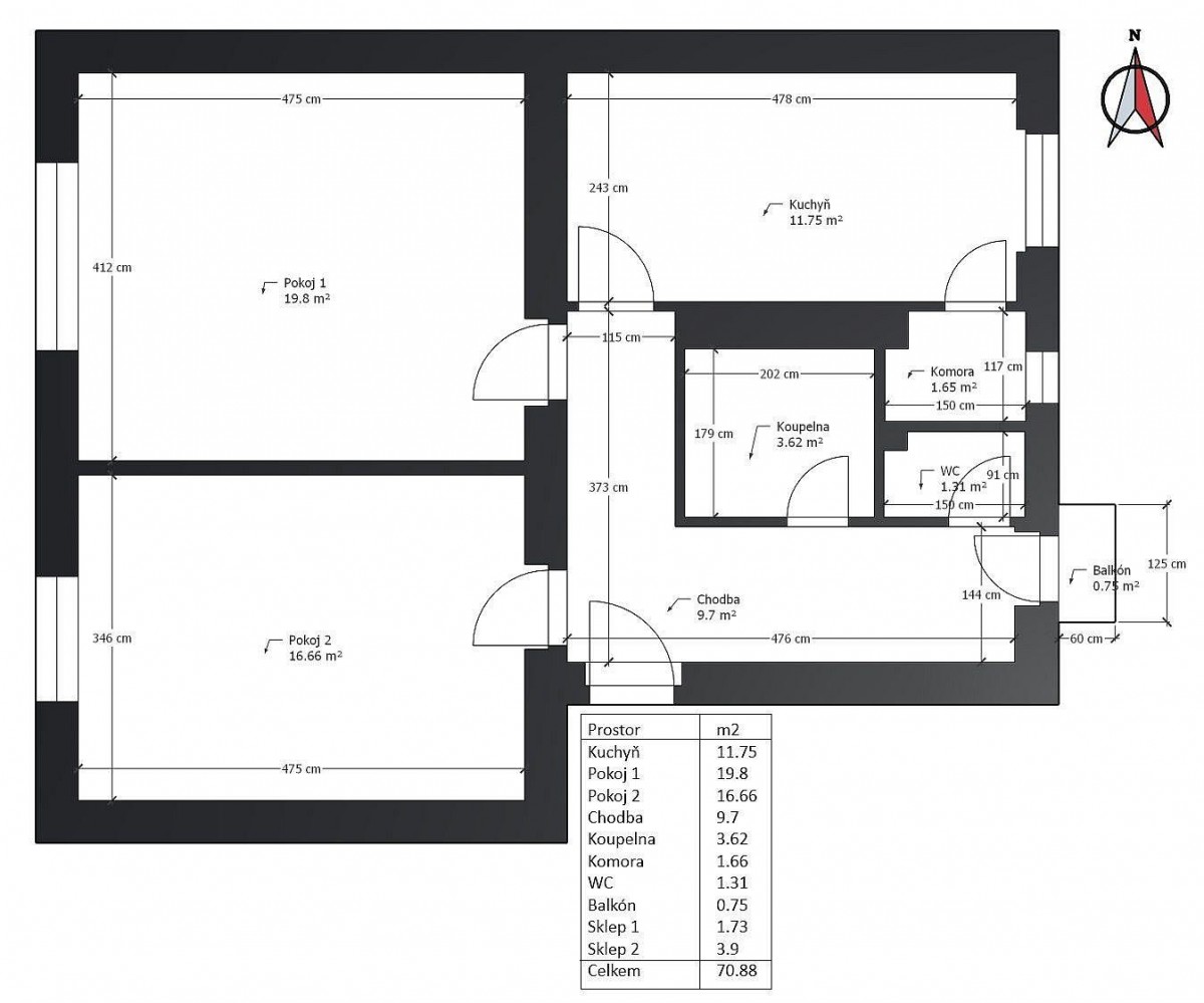 2+1, 66 m2, cihlová, OV, 2. podlaží